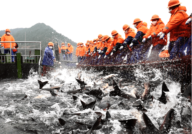 “我宣布,新春第一网开捕!”伴随着一声令下,“巨网捕鱼”新春第一网正式拉开帷幕。几十名专业捕捞队员在号子声中,不停地拉动手中的巨网,而随着巨网的逐渐收紧,浪花飞溅,万鱼狂舞,越来越多的鱼儿腾空而起,似乎在为千岛湖渔业复工复产欢呼。