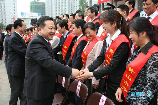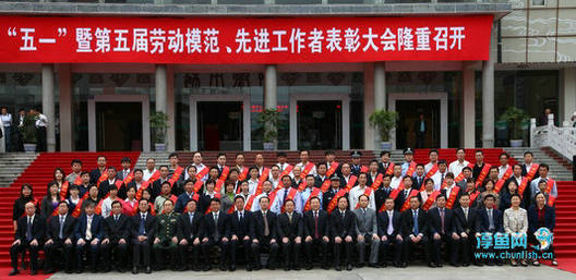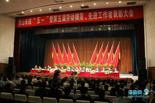 在随后举行的表彰大会上,黄山市领导王福宏、宋国权、张开南、程迎峰等共同为市第五届劳动模范、先进工作者颁奖。
