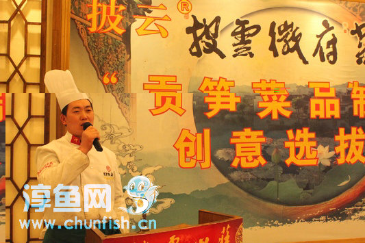 黄山歙县披云山庄第二届“问政贡笋节”开幕在即,黄山歙县披云山庄秉着“菜肴比拼,选拔推广”的理念。在3月5日,“贡笋菜品制作”创意选拔赛在黄山歙县披云山庄新安厅隆重举行。徽学专家汪钧、毕维鹏应邀参加本次比赛。
