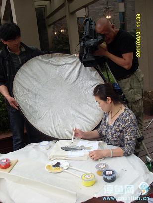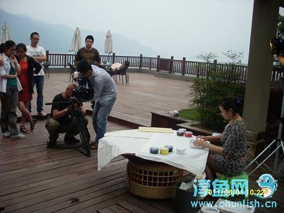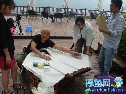 ,浙江文广集团传媒在公司餐饮发展部副经理方亮的陪下,到钓鱼岛店取景拍摄鱼拓制作过程。拍摄现场人、鱼、景相生相融,充分展示了鱼拓艺术之高雅。(郑文娟)