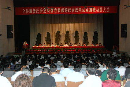 全县服务经济发展暨省级旅游综合改革试点推进动员大会于5月27日上午8时在县青少年活动中心隆重召开,会上,县政府领导表彰了2010年度旅游业、服务业先进单位,鱼味馆获得了“二0一0年度旅游信息化工作先进单位”称号。(毛泽虹)