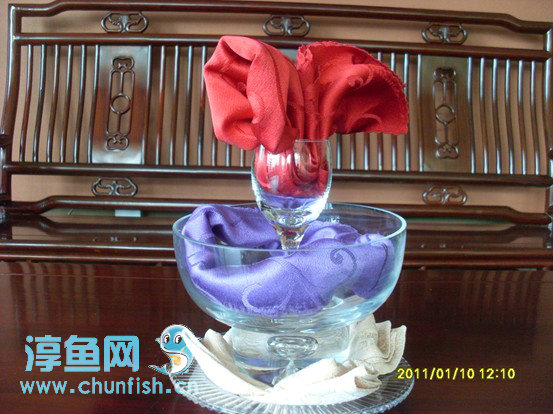 在公司节能降耗氛围熏陶下,钓鱼岛店员工人人争做低碳环保、节能降耗的模范,前厅员工更是充分发挥自己的智慧,利用酒店现有的材料制作出一个个精美的作品来美饰我们的环境:有用路边的花花草草插出一盆盆美艳大方的插花,也有用酒店台布、口布制作出各样的漂亮的装饰·····,只要您到钓鱼岛休闲用餐,您就会发现并爱上钓鱼岛,因为您在用餐时都能享受到那淳朴、回归自然的感觉!(郑文娟)