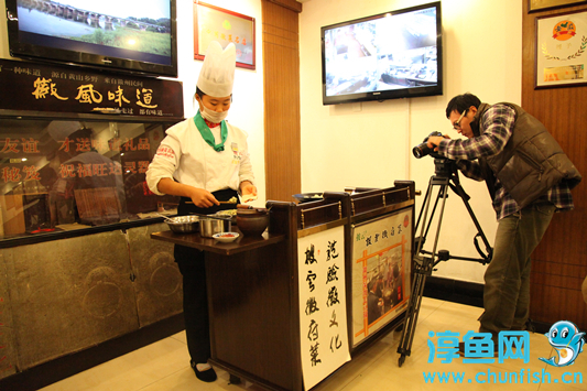 “太白鱼头、石锅臭鳜鱼、深渡毛豆腐、深渡包袱······”摄制组对一道道经典“披云徽府菜”的制作技艺进行了全方位的跟踪拍摄。此外,记者还就披云发展史和徽府菜文化对歙县披云山庄有限公司总经理方东进和徽文化专家汪钧进行了专题采访。