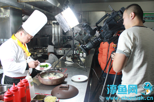 拍摄披云山庄制作的中国名菜——太白鱼头