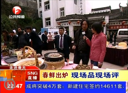 在直播过程中,来自各大企业和文化领域的评委嘉宾们一边品味着贡笋美食,一边体验着徽府文化,并在激烈的角逐中,评选出八道“2013我最喜爱的贡笋美食”。