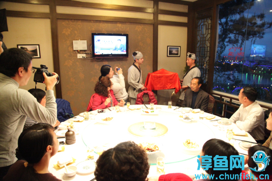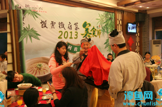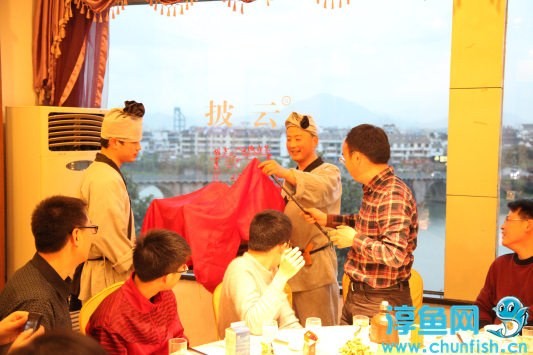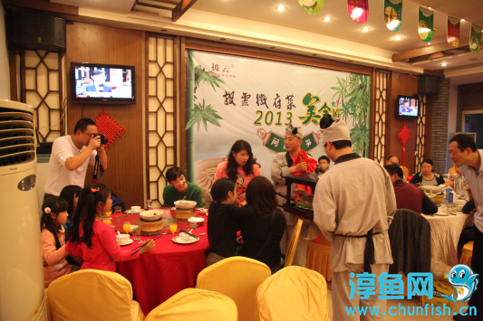 在这踏春之时,一声声锣响与吆喝回荡在歙县披云山庄的餐厅各处,披云的店小二们抬着“有头有脸”送上餐桌,为顾客送去祝福,让他们切实体验到徽府菜的文化与健康。(潘旻)