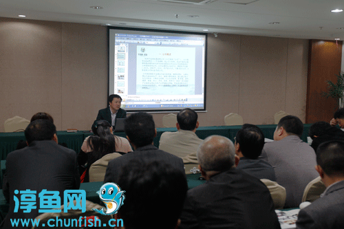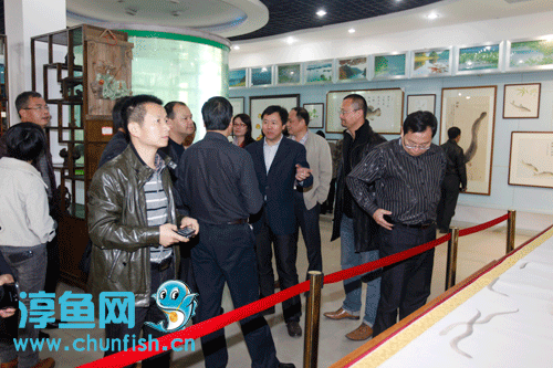 考察团一行在参观了公司渔业文化展示中心,了解了“淳”牌有机鱼的品牌建设过程和实际做法后,召开了座谈会,听取了公司副总经理徐明江关于公司基本情况和淳鱼品牌创建历程与经验的报告,并围绕农业品牌打造进行了深入交流与研讨。