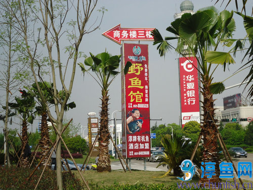 4月10日,杭州榕榕餐饮野鱼馆在机场新商务楼发布淳鱼广告。