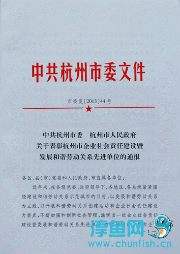 鉴于公司近年来在履行企业责任建设方面所做的工作,千发公司被评为“2012—2013年度杭州市企业社会责任建设A级单位”,受公司汪建敏总经理委托,公司副总经理王武军代表公司参加会议并领奖。