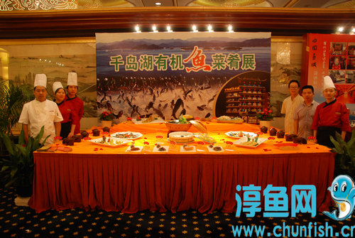 在展示会上,千岛湖鱼味馆精心烹制的有机鱼菜肴展台在酲目位置展出,并引起了旅游业人士的高度关注。在“畅游杭州、共享美食”接待品鉴会,秀水砂锅鱼头作为宴会的主打菜肴和头道菜肴着实秀了一把,让与会嘉宾赞不绝口。