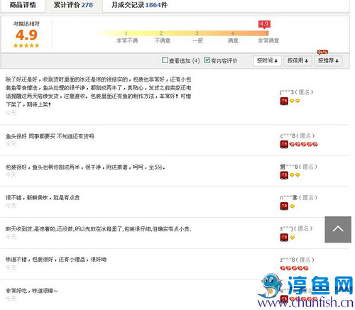 客户满意度满分5分,亲们给予千岛湖淳牌有机鱼高度的评价,综合评价满意度达4.9分。亲们期盼下次还能再吃到千岛湖淳牌有机鱼。(黄海星)