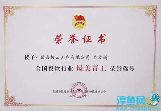 日前,从隆重举行的湖南长沙全国餐饮业群英大会暨第23届中国厨师节上传来喜讯,歙县披云山庄的晏文娟同志荣获全国餐饮行业“最美青工”及“青年岗位能手”双项殊荣,合肥市披云徽府的彭锡林同志荣获“中华金厨奖”。