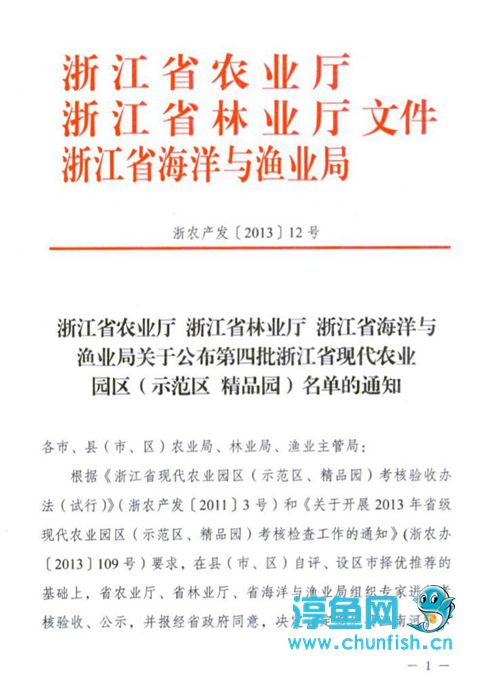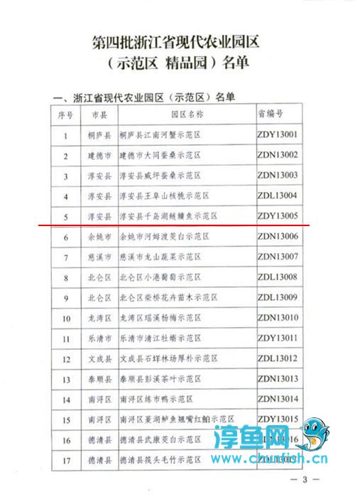 近日,浙江省农业厅、林业厅和海洋与渔业局联合下文公布了第四批浙江省现代农业园区的名单,由公司组织实施的淳安县千岛湖鲢鳙鱼示范区名列其中。