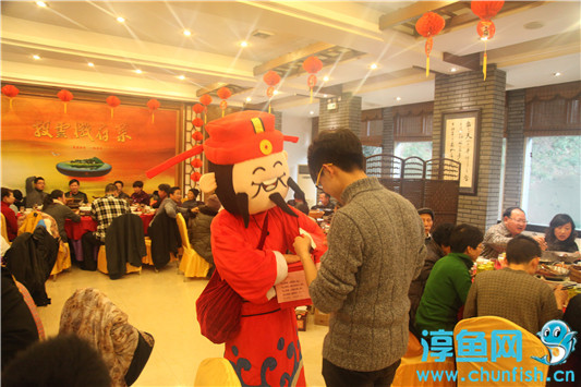 春节期间,”歙县披云山庄还特地请来“财神”向八方来宾派发新春贺礼,送上新春祝福。顾客们围住“财神”,抽取礼物,索要合影,在披云山庄感受到了别样的节日氛围。(潘旻)