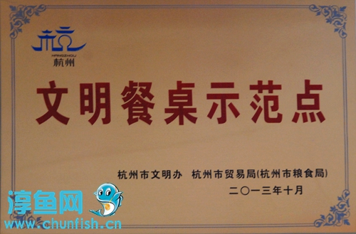 近日,千岛湖鱼味馆被杭州市文明办、杭州市贸易局、杭州市粮食局评为“杭州市文明餐桌示范点”。