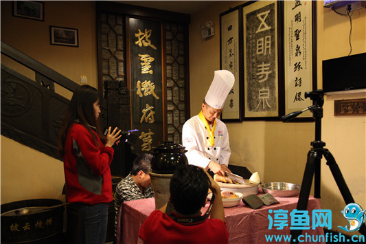 一场春雨一场新颜,万物繁衍繁盛。日前,成都电视台《远方的味道》栏目在春雨绵绵之际走进徽州,莅临歙县披云山庄,寻访非物质文化遗产“披云徽府菜”。摄制组一行拍摄了问政山笋、徽州火腿和山珍蕨菜等一系列徽州味道,通过披云徽府菜展现富有徽州特色的风土人情。 (潘旻)