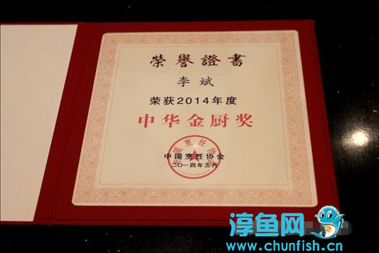 “中华金厨奖”是由中国烹饪协会主办的全国烹饪界最高奖项,是为表彰在餐饮管理、烹饪创新、烹饪事业贡献和烹饪教育与理论成果等方面做出突出贡献的单位或个人。(潘旻)