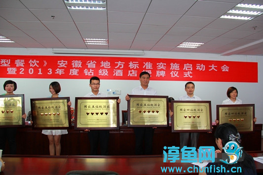 日前,在安徽省商务厅组织召开的《节约型餐饮》安徽省地方标准实施启动大会暨2013年度钻级酒店授牌仪式上,歙县披云山庄及旗下黄山披云徽府菜馆被全国酒店酒家等级评定委员会授予“国家四钻级酒家”,旗下另一家酒店黄山披云百变徽宴被授予“国家五钻级酒家”。披云山庄代表接受授牌并作交流发言。(潘旻)