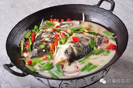 千岛湖鱼头一个(约重2000克),圆形红泡椒、葱段、姜片各5克。