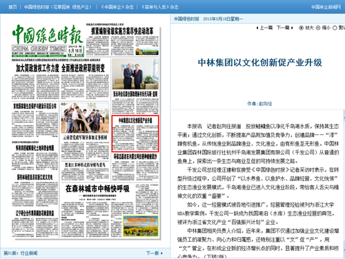 日前,《中国绿色时报》刊文“中林集团以文化创新促产业升级”,着重讲述了公司“以水养鱼、以鱼护水、品牌经营、文化统领”的生态渔业发展模式,成为中林集团创新转型发展中的典型。