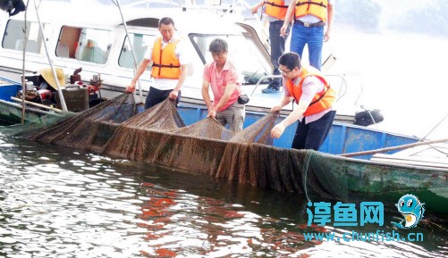 渔政分站整治老口网箱倒笼偷捕鲢鳙鱼