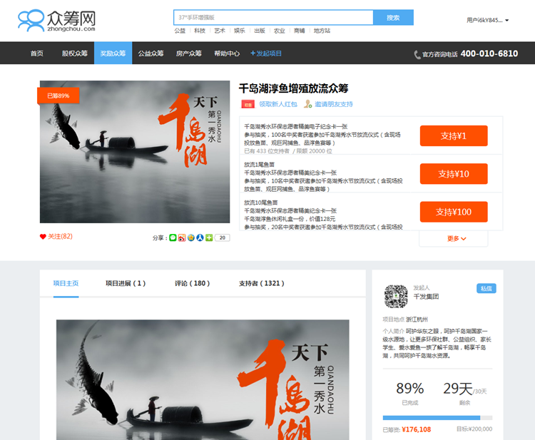 2015年8月1日8点01分,以呵护千岛湖为主题的千岛湖淳鱼增殖放流公益众筹项目在众筹网正式上线。