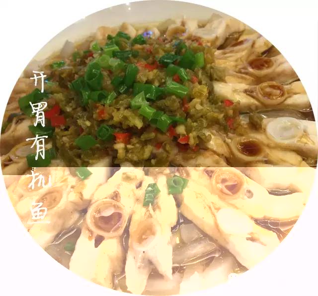 还有一道是开胃有机鱼,用当地土家腌制手法使青辣椒变成黄色,覆盖在白嫩嫩的鱼肉上,蒸制后保留了鱼肉的鲜嫩与鲜香。说它怪是因为腌制的农家酱的咸鲜辣融为一体,品尝过后任凭你搜肠刮肚找形容词也没办法说出到底是个什么味。不信吗?你可以自己来试一试。
