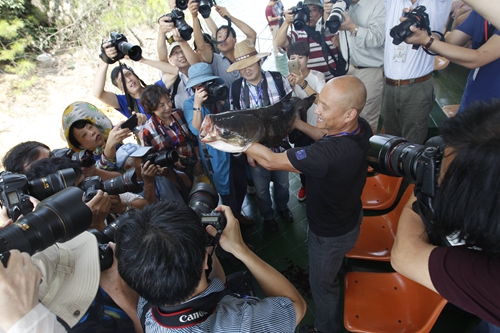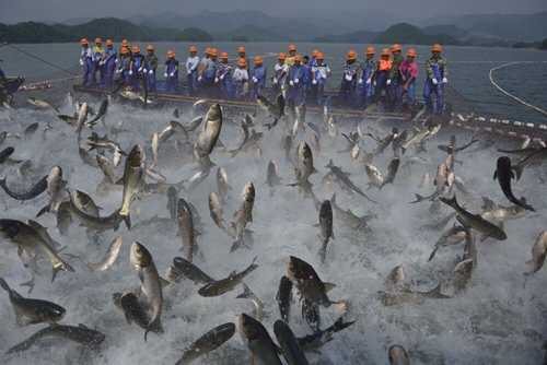 今天上午,出席活动的嘉宾与摄影家来到公司有机鱼捕捞现场,采风巨网捕鱼。群鱼狂舞的壮观场面让众多摄影“大咖”过足了瘾。(汪敏)