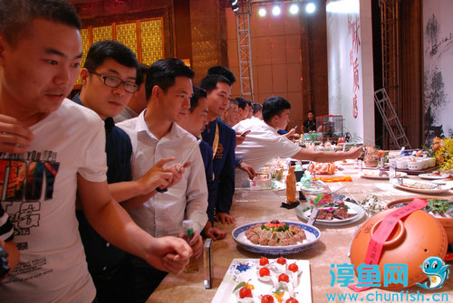 千岛湖鱼味馆受邀参加厨师节,酒店宋建仁、方林贵等2位中国烹饪大师被评为浙菜新锐大师,他们分别代表鱼味馆展示了“秀水砂锅鱼头”和“群鱼献花”两道淳鱼菜肴。(许立帆)