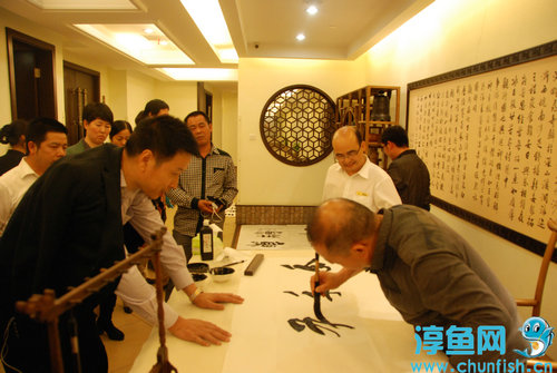 10月12日,桐庐、建德、淳安三地书画协会主席齐聚鱼味馆进行了一场文化艺术交流。在品味鱼味馆浓厚的文化氛围后,主席们有感而发,挥毫泼墨,同行的协会成员们也纷纷展示书法技艺,不一会儿一幅幅风格各异的以鱼为主题的书法跃然纸上,吸引了用餐的宾客驻足观看。