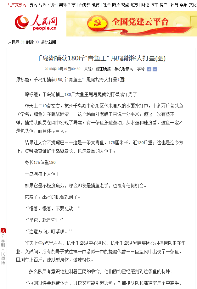 日前,公司捕捞队捕获一条大青鱼,吸引各方媒体纷纷关注,来看相关报道。