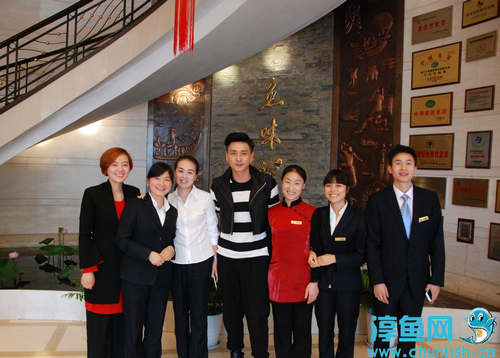 11月6日中午,香港TVB当家小生,知名歌手、演员黄宗泽莅临千岛湖鱼味馆,品尝美味的淳牌有机鱼头。黄宗泽亲自为鱼头开封剪彩,鱼头原汁原味、鲜而不腻的特点令他赞不绝口。用餐结束后,黄宗泽还与酒店员工亲切合影留念。(许立帆)