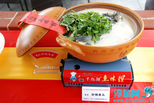 在千岛湖十大名菜的评选中,千岛湖鱼味馆参赛的以淳牌鳙鱼为原料的砂锅鱼头,受到了领导和市民的好评,经过评委组的评定,被列为千岛湖十大名菜之首。千岛之吻、古法笋煲、农家暖碗、相门粽香、留香石斑、盐水河虾、椒盐溪鱼、牛肉素鲍、坊间豆腐等菜肴也入选十大名菜,成为千岛湖美食代表的名菜之一。