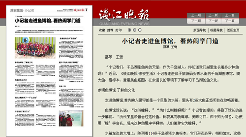 “小记者们,千岛湖是鱼类的天堂,作为千岛湖人,你知道我们湖里生长着多少种鱼吗?”近日,《钱江晚报·淳安生活》小记者走进位于旅游码头秀水街的千岛湖鱼博馆,摸大鱼、看标本、赏最美鱼拓图,在余馆长的带领下了解学习千岛湖的鱼文化。