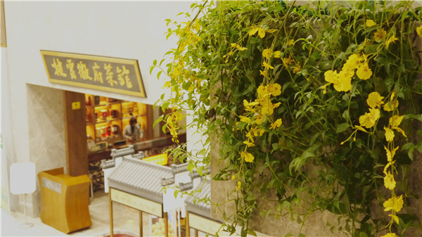 在徽州过年当然离不开酒文化了,巨大的酒缸串着鞭炮与水中的鱼儿交响辉映,周边的宴会主题雕刻更让顾客感受到披云徽府宴的文化