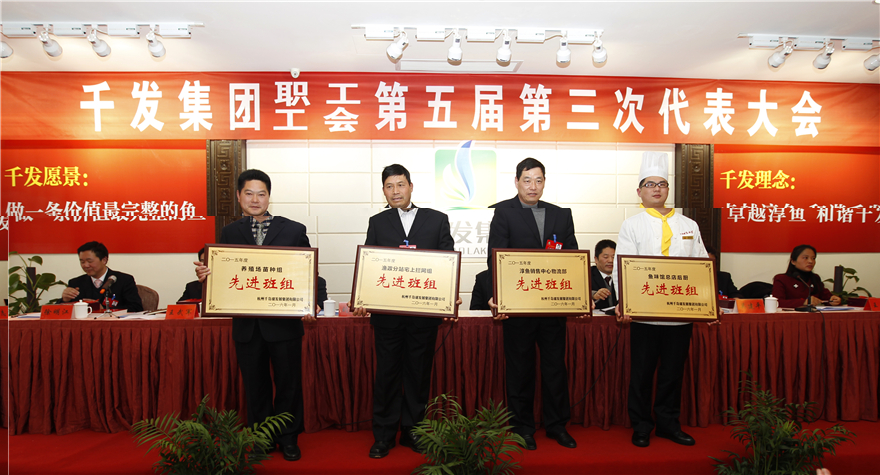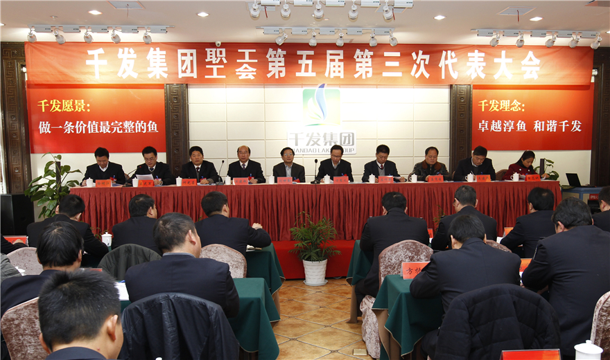 森林国际旅行社总经理、千发集团董事长刘世勤作重要讲话,他高度肯定了公司2015年以及过去十几年来取得的辉煌业绩,他指出,公司经过十八年的发展,一是战略定位清晰,从一个林业企业成功转型为渔业企业,开创的“养鱼治水”生态渔业模式被总结为全国水库湖泊生态渔业发展的“千岛湖”模式,升华的保水渔业理论成为公司持续发展的基础和保障。二是建立健全了较为先进的现代企业管理制度,率先实施EVA考核机制,较早引进了非公有制经济,大力开展混合所有制实践。三是重视企业文化建设与企业品牌打造,淳鱼文化品牌日益响亮。四是管理精细化,无论在渔业或是餐饮产业方面的标准化都做到了极致,取得了县、市政府质量奖。他强调,2016年是“十三五”规划的起始之年,千发集团要按照“做行业领袖、创一流企业”的要求,进一步坚定信心,拔高战略目标,继续保持经济连年增长的好态势,不断将企业做优做强。