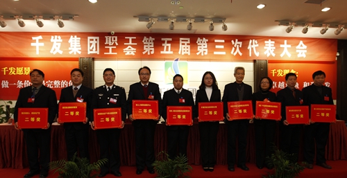 会议间隙,还举行了简短的千发集团揭牌仪式,在装修一新的总部办公楼前,刘世勤董事长、汪建敏总经理为千发集团揭牌。