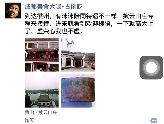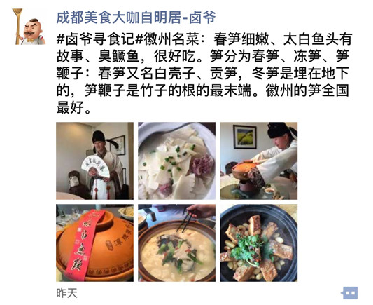 几位美食大咖对披云徽府菜进行了拍摄、品尝和体验,印象十分深刻,也将各自的感受发至朋友圈,和全国食客分享。(潘旻)