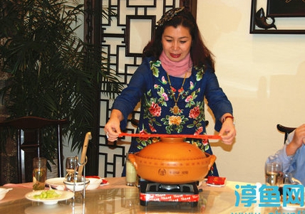 席安娜女士为秀水砂锅鱼头开封剪彩。
