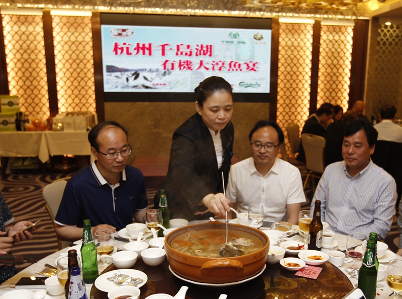 本次千岛湖淳牌有机鱼品牌推介会由公司主办,香港千岛湖淳鱼商贸有限公司和彩逸酒店共同承办,淳安县渔政渔港监督管理局副局长项卫民,千发集团相关部门负责人等出席推介会。(汪敏)