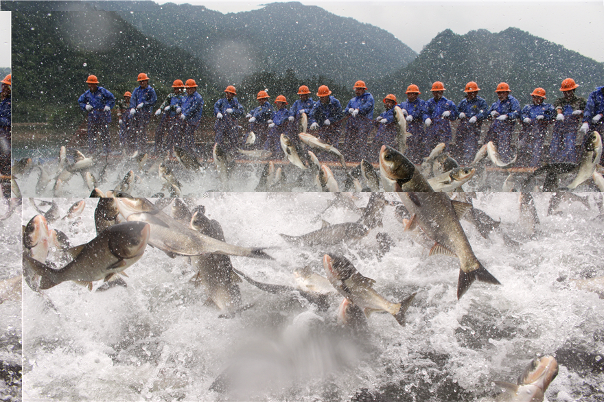 “巨网捕鱼倒计时1分钟准备!”“畚斗网起网!” 5月24日下午,随着公司常务副总经理何光喜一声令下,捕捞一队的队员们开始整齐有序地拉动手中的网具。网越收越紧,沉寂在水下的鱼儿受到惊动后纷纷跳跃起来,不一会儿,和着捕捞工人有节奏的起网号子,成千上万的鱼儿像精灵般翻腾跳跃,一时间,淳鱼狂舞、秀水沸腾,让前来拍摄专题节目的央视记者兴奋不已,欣喜地记录下这一场精彩的画面。