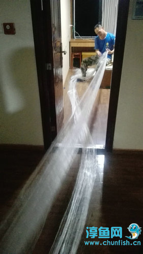 在员工宿舍、食堂大厅、员工活动室、宿舍外的走道上,到处可见大家忙碌的身影和上下穿梭的梭子。为了提高鱼货质量,大家积极发扬主人翁精神连夜装配网具,以解决捕捞生产急需单层刺网的难题。(向可仁)