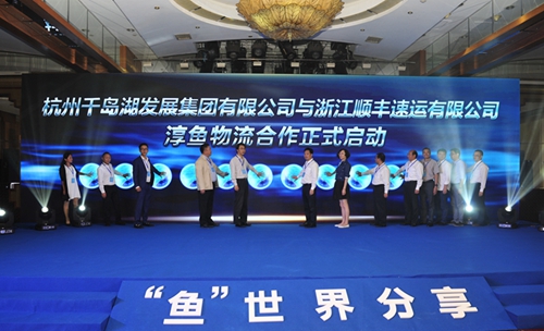 公司总经理汪建敏致欢迎辞,他指出,在将一条普通的千岛湖鲢鳙鱼打造成享誉全国的千岛湖有机鱼之后,千发集团又主动对接“互联网+”,先后启动了千岛湖淳牌有机鱼天猫预售首发仪式,成功发起了我国渔业首个公益互联网众筹活动。今天,又与顺丰冷运、千岛湖淳佳网络科技公司达成深度合作协议,推动千岛湖有机鱼通过互联网和顺丰冷运“游上”千家万户的餐桌。作为千发集团整合引入外部资源而投资成立的杭州千岛湖淳佳网络科技有限公司,将专注于千岛湖“淳”牌有机鱼生鲜产品和千岛湖农特产品开发及销售,通过供应链资源的整合,让消费者在家就能品尝到千岛湖有机鱼的鲜香美味。