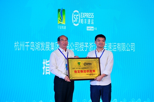 千发集团总经理汪建敏授予顺丰公司指定物流供应商。