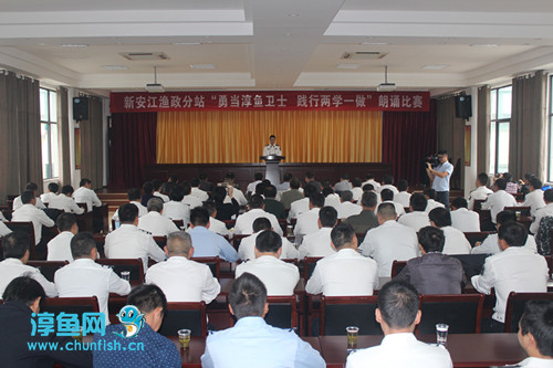 近日,新安江渔政分站“勇当淳鱼卫士,践行两学一做”党员专题朗诵比赛在县委党校三楼报告厅落下帷幕,36名党员一一台朗诵。开发总公司党委副书记、总经理、千发集团常务副总经理何光喜,开发公司纪委书记姜秉圣,县渔政局局长吴福建及千发集团副总经理王武军等8位领导应邀担任评委。