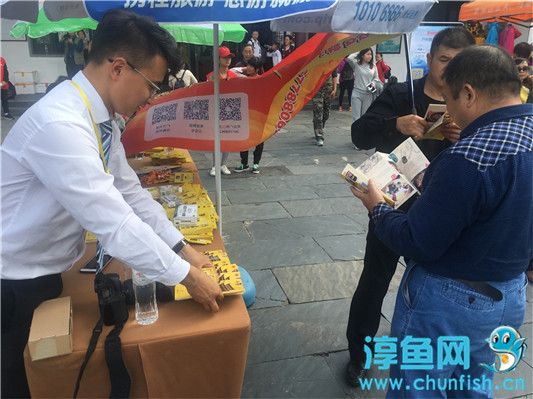 披云山庄工作人员在报道处进行问讯接待,同时宣传披云徽府菜。