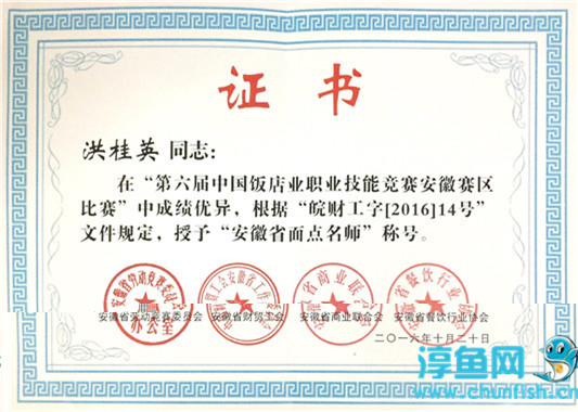 披云山庄洪桂英、披云徽府文才华荣获安徽省面点名师