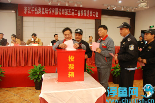 12月20日,千岛湖鱼味馆召开第五届工会换届选举大会。千发集团党总支书记、工会主席、副总经理王武军,总会计师王志妍,新安江开发总公司工会及千发集团办公室负责人,鱼味馆100余名工会会员参加会议。