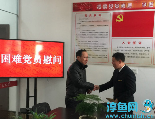 1月20日,开发总公司党委书记方震凡在千发集团党总支书记、副总经理王武军的陪同下,来到鱼味馆看望慰问了困难党员。方书记详细了解了困难党员的工作、生活情况,并送上了慰问金以及节日的问候,希望他勇于面对困难,以积极饱满的精神状态投身到企业工作中。