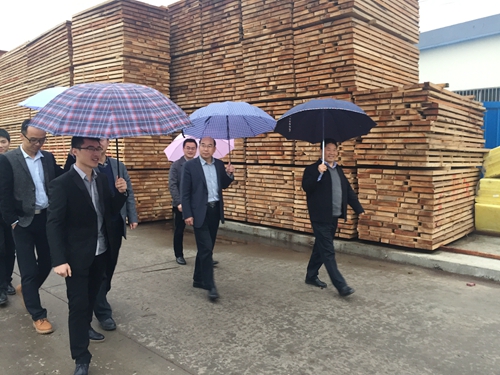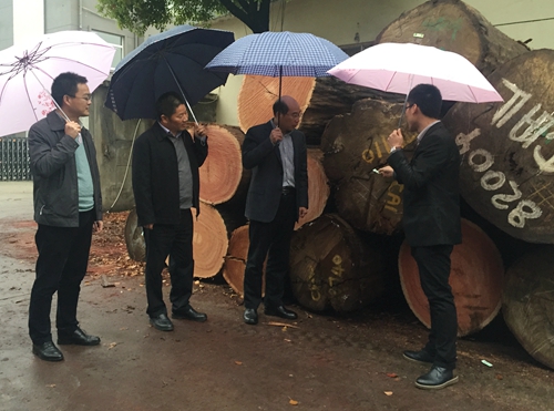 日,千发集团董事长汪建敏、总经理何光喜、副总经理王武军等一行前往江苏张家港木材交易市场考察林产品贸易业务。(王君平)